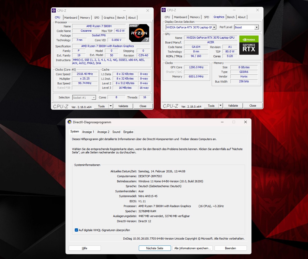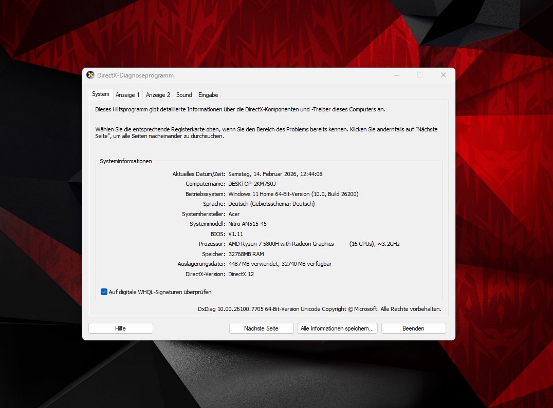 Produkt: ⭐Acer NITRO 5 – Ryzen 7, RTX 3070 8GB, 32GB RAM, 1000GB SSD, RGB – TOP!⭐
