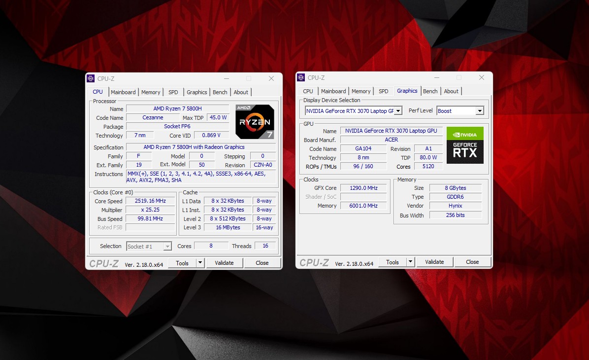 ➡Grafik: NVIDIA GeForce RTX 3070 8GB + AMD Radeon Graphics