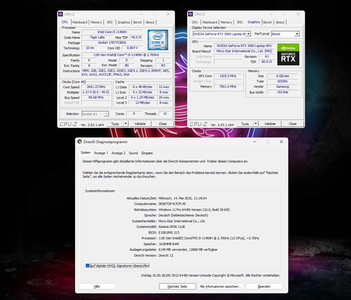➡Grafik: nVidia GeForce RTX 3060 6GB + Intel UHD Graphics
