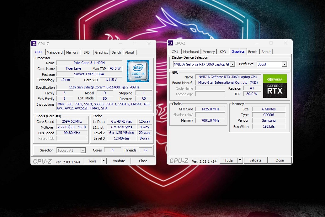 ➡Prozessor: Intel i5-11400H (6 Kerne, 12 Threads – 2,70GHz bis 4,50GHz)